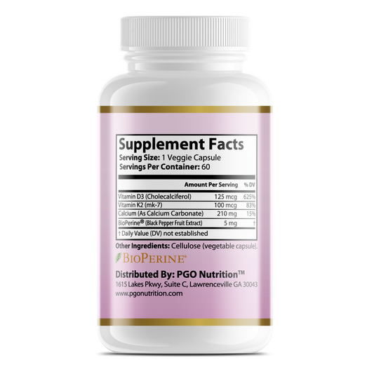 Vitamin D3+K2 Supplement with Calcium, 5,000IU D3, 100mcg K2, 210mg Calcium, 60 Capsules